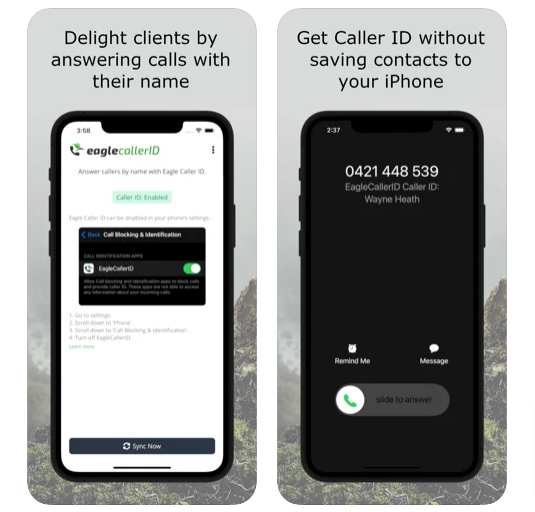 Eagle Caller ID allows you to sync contacts from your Eagle database so you can create a friendly and professional experience by answering callers by name. When a contact calls, your iPhone will display the contacts name on screen.