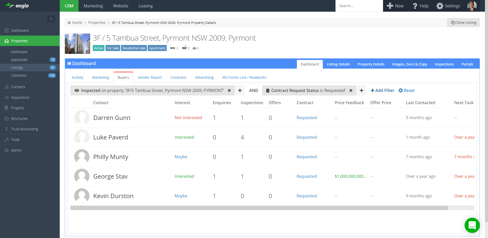 - Identifying and moving buyers through the process from enquiry > inspection > sending contract > offer
