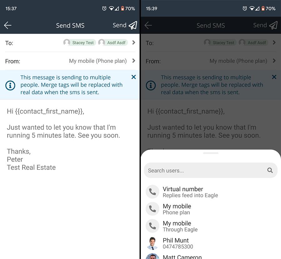 - Ability to set where SMS messages are sent 'From' when sending from anywhere within the app