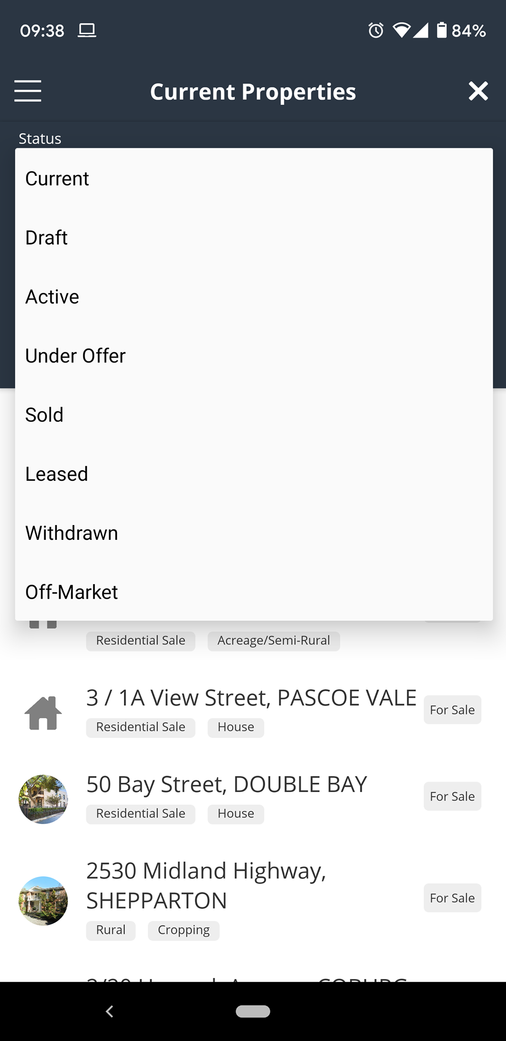 - Added new status filter options to the Listings screen for Off Market, Withdrawn and Under Offer listings