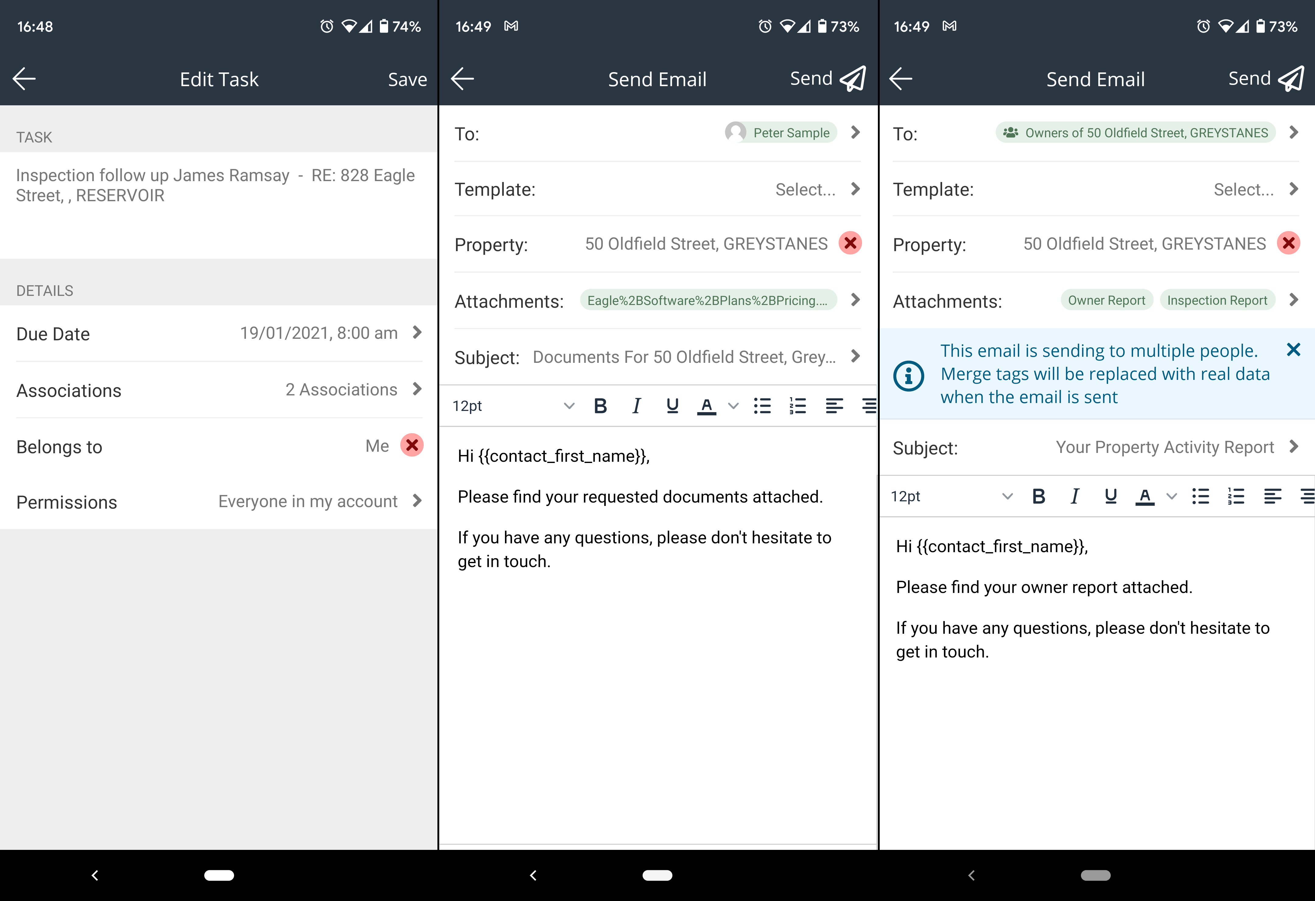 - When sending owner report email from the Owner/s tab within an Inspection: