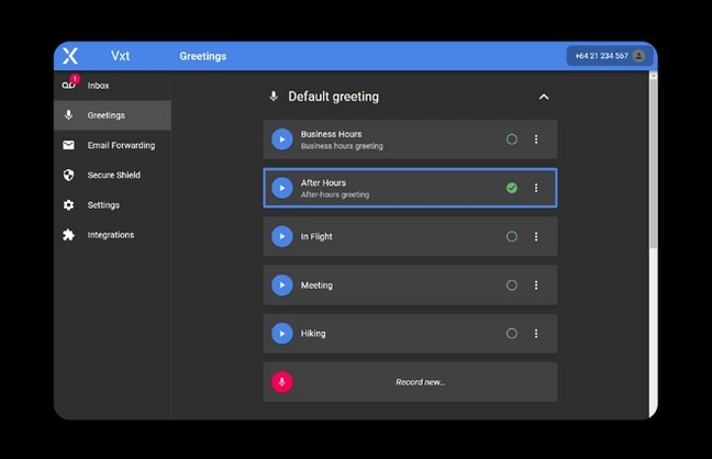 Vxt is a voicemail platform that features email forwarding, smart voicemail greetings and advanced security.