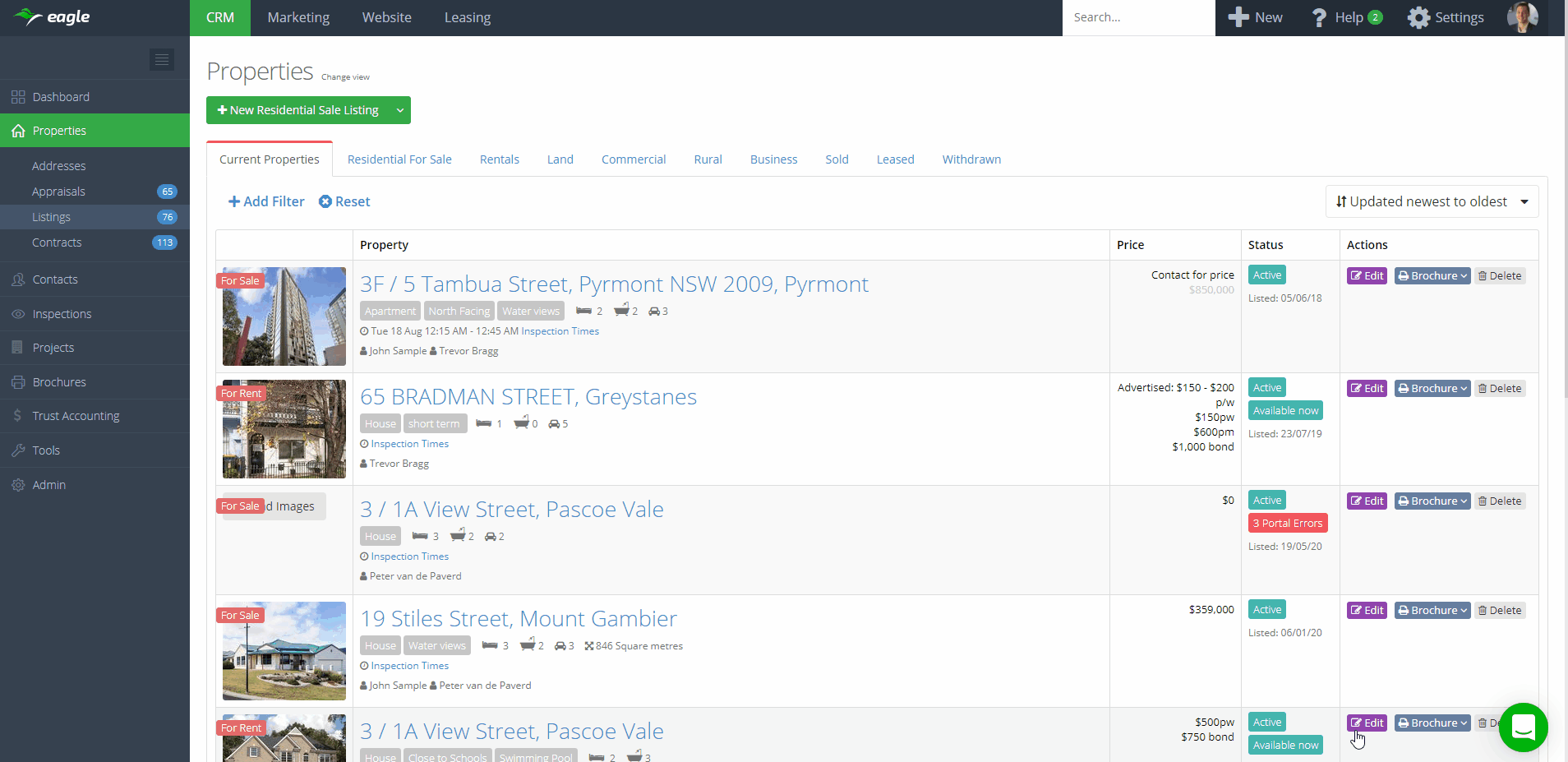 Advanced filters let you specify multiple filters using AND or OR conditions to drill down your results. New sort options let you sort your results newest to oldest or oldest to newest on all listing related dates (eg. listed date, upcoming inspection date, leased date, sold date etc.).