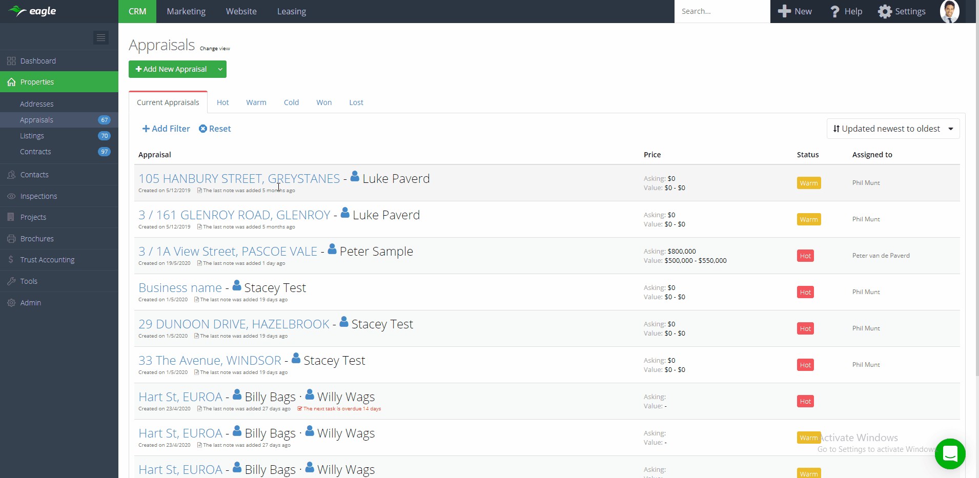 For example you could find appraisals assigned to a specific user AND the vendor lives in 'vic' AND the interest level is 'warm' OR the interest level is 'hot', then sort them by 'Interest level'.