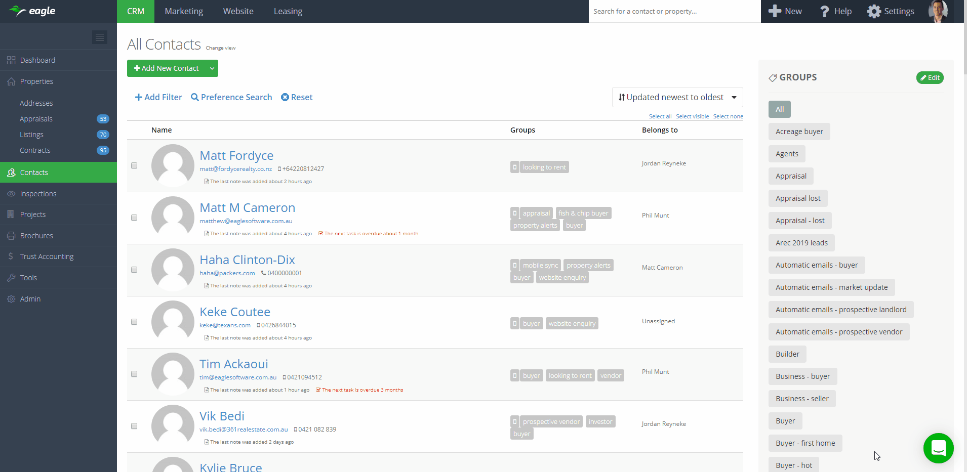 A whole suite of new automations with pre-written communications around inspection bookings. You have full control to customise the messaging, timing and which communications you'd like sent. Go to CRM > Tools > Automation and look for the [Sales Bookings] or [EagleLeasing] tags.