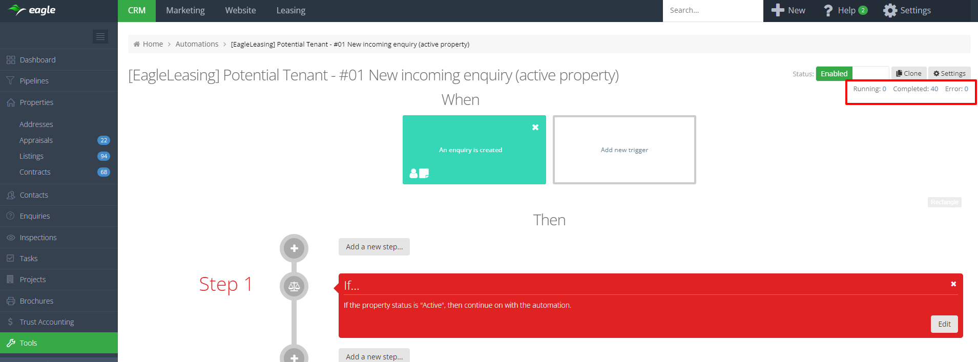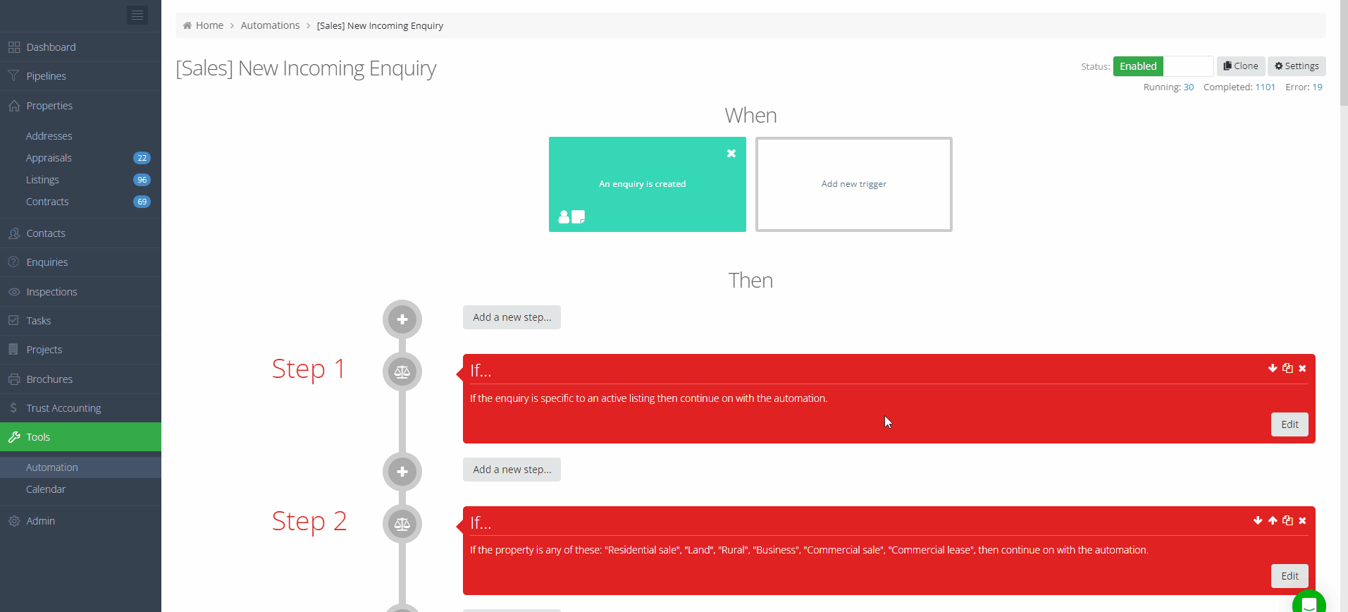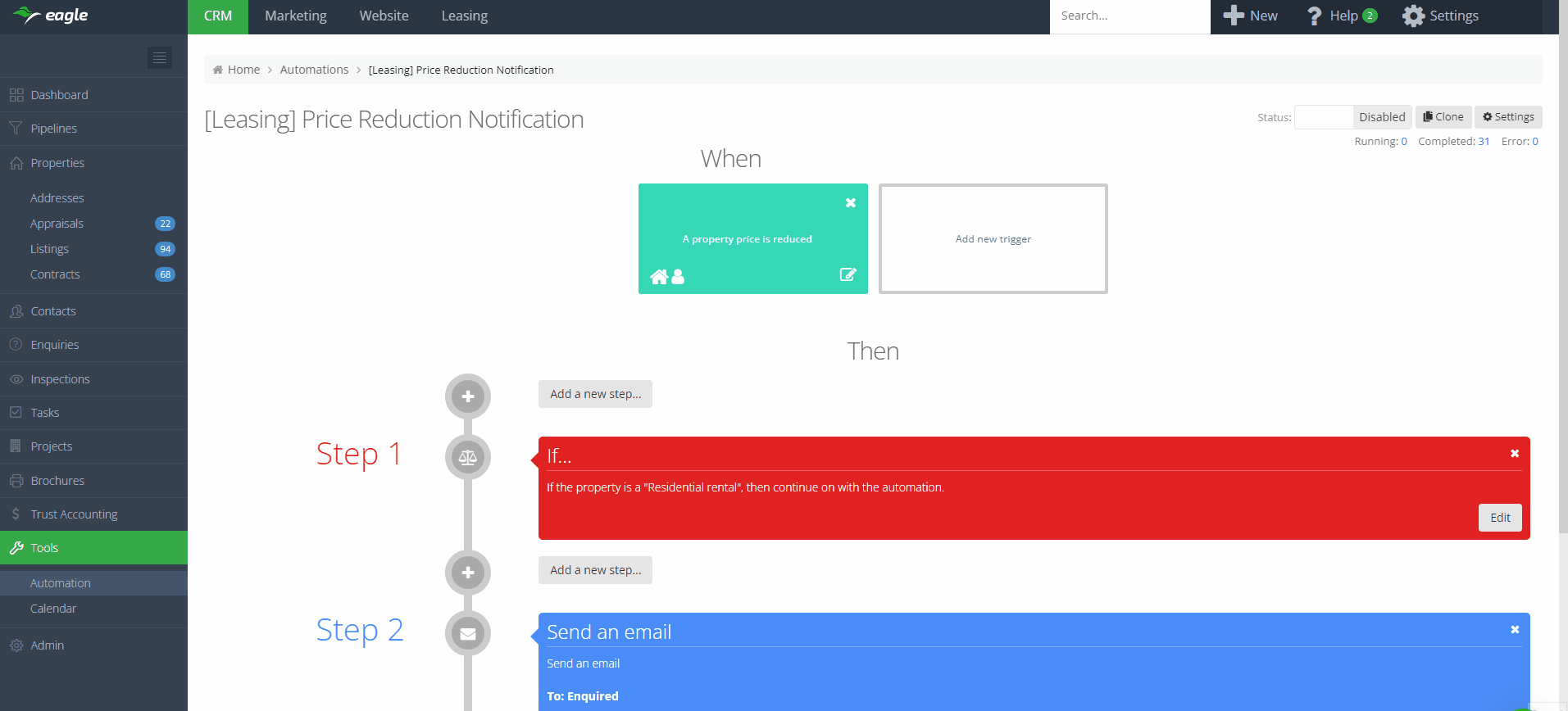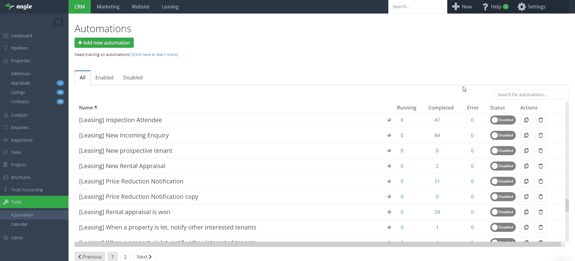 Introducing the new Automations screen! With this update, we have given the Automations screen a facelift to match the upgrades made to other index screens, such as Enquiries and Tasks. The new look and feel of the Automations screen will make navigation faster and easier for you.