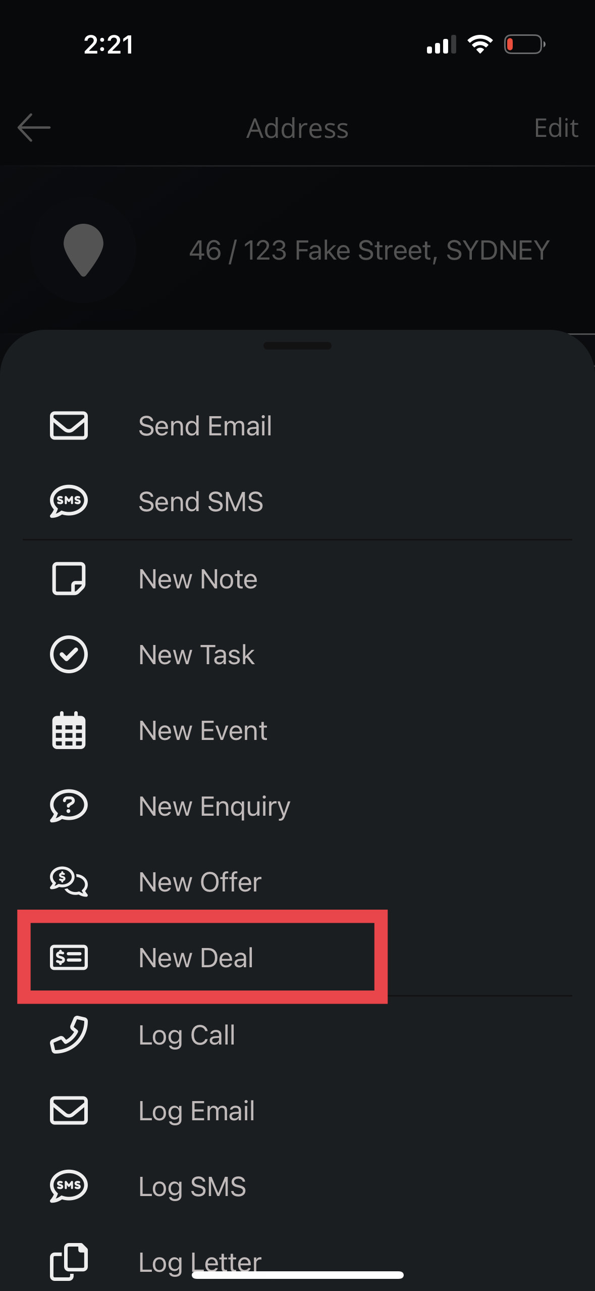 - Creating deals on-the-go is now easier than ever before! Simply click on the "+" button when viewing a record on the Contracts, Addresses, Appraisals, Listings, and Contacts screen to create a new deal.
