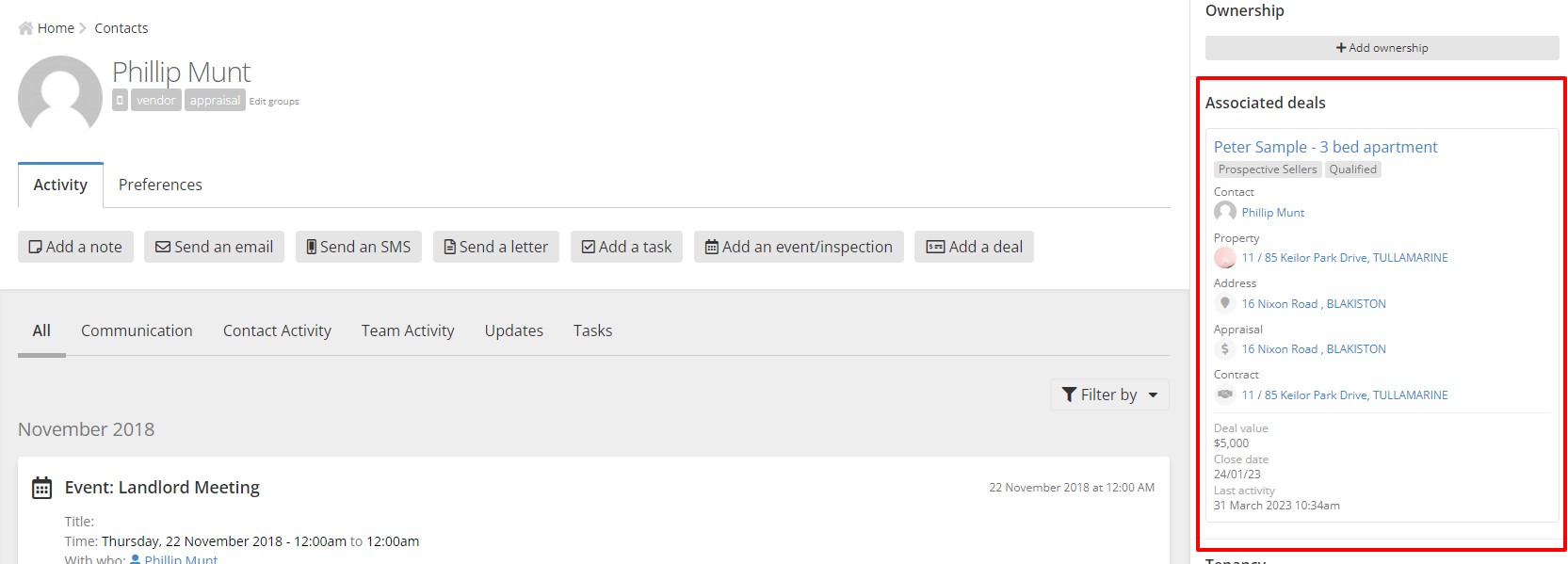 - Enquiries imported from Realestate.com.au will add the contact to the 'landlord-prospective' group if the enquirer is looking to buy an investment property. This will allow you to identify an enquirer as a prospective landlord and even set up automations around it.