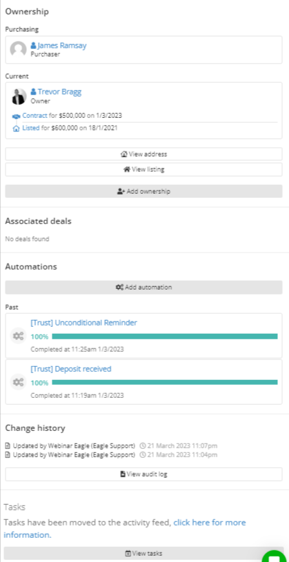 - Introducing the contract sidebar and widgets, which greatly enhances the user experience and streamlines the contract management process. The Sidebar provides quick and easy access to important contract information and actions, including generating contract-related PDFs, sales advice and account sale letters and emails, adding and removing ownerships, accessing associated Invoices, Deals, Automations, Tasks, more info here.