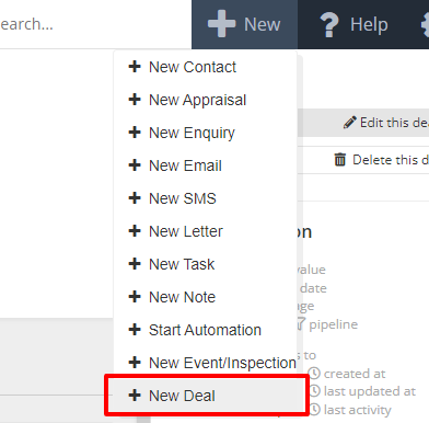 - Added the ability to create a new deal from the top bar ‘+ New’ menu