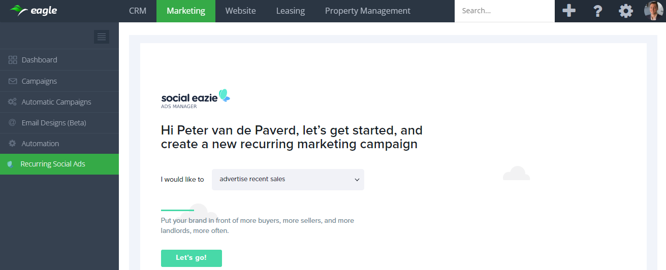 - Upgraded the Social Eazie integration to include Recurring Social Ads. Use this to setup a monthly recurring social ads campaign for promoting your brand and recently sold listings. Go to Marketing then click into Recurring Social Ads to get started.