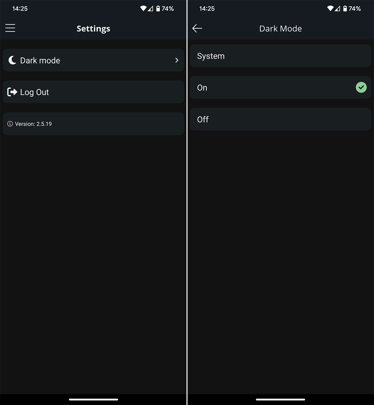 - Set to 'System' to update based on your phones system settings (eg. in battery saver mode dark mode is enabled)