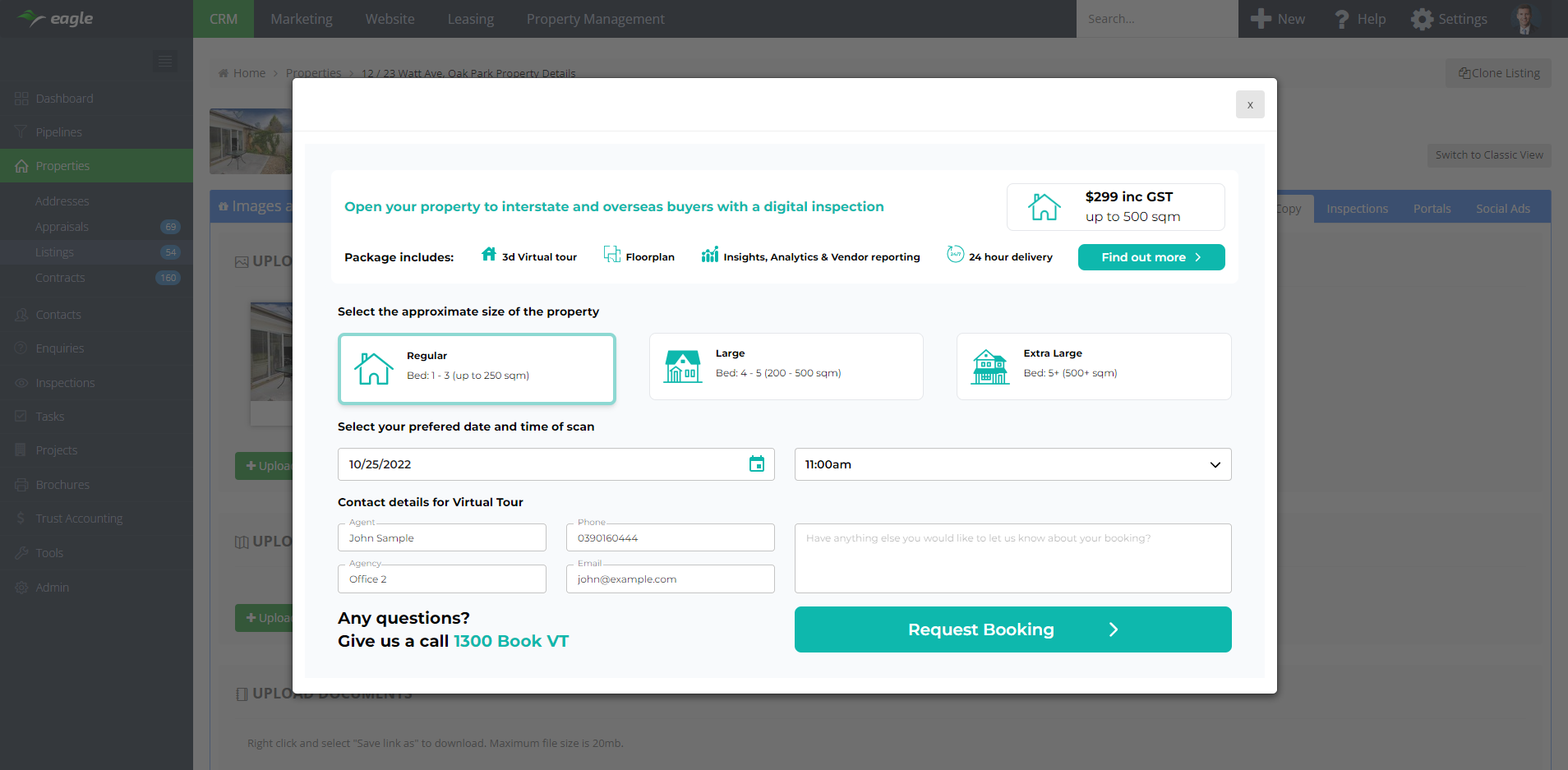 You can now place a an order directly with Little Hinges from within Eagle. Simply navigate to the Images, Docs & Copy tab of a listing and click any of the new order buttons in the Images, Floorplans or Online Tour section. The online order form is pre-populated with your details.